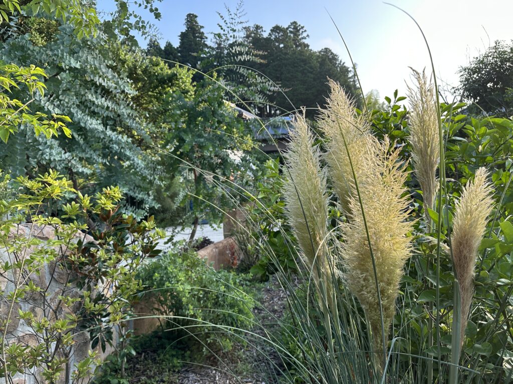 ミニパンパスグラスも株分けして、今年やっと咲いた