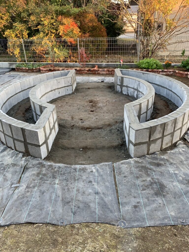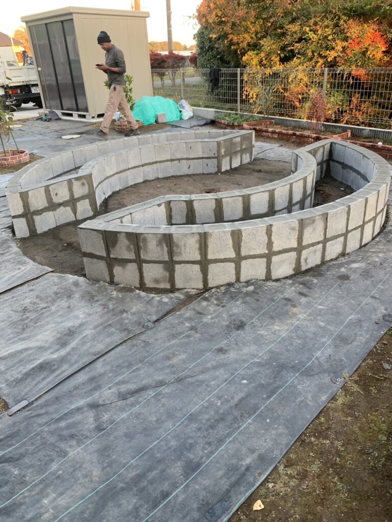 ここにブロックでレイズドベッド作るのは難しいですよね(笑)