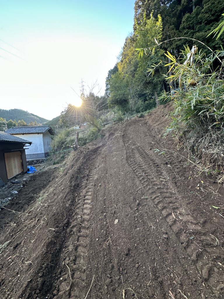 45℃くらいある傾斜をユンボで登るの