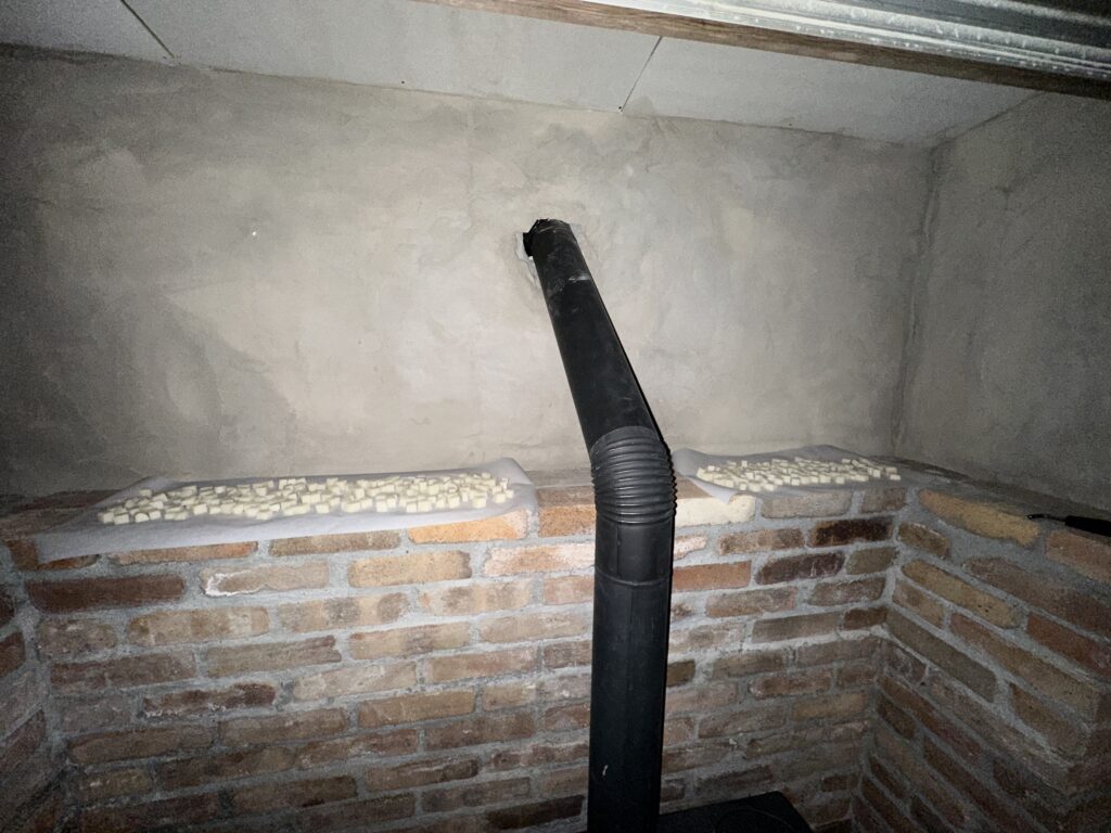 レンガの天端にカットしたお餅が沢山