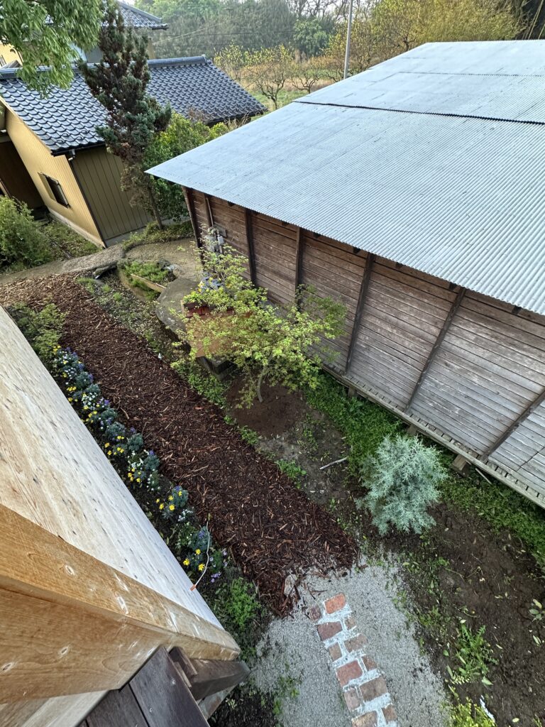 裏路地のガーデン、朝だけ太陽が照らす場所