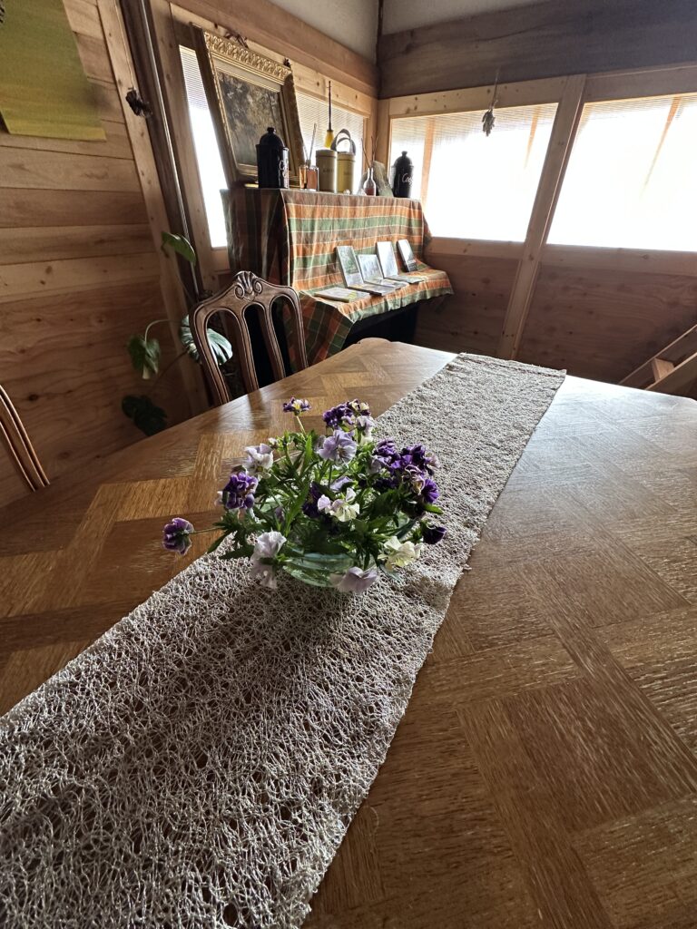ビオラが大きくなって来たので、ガラスボールに飾って見ました。