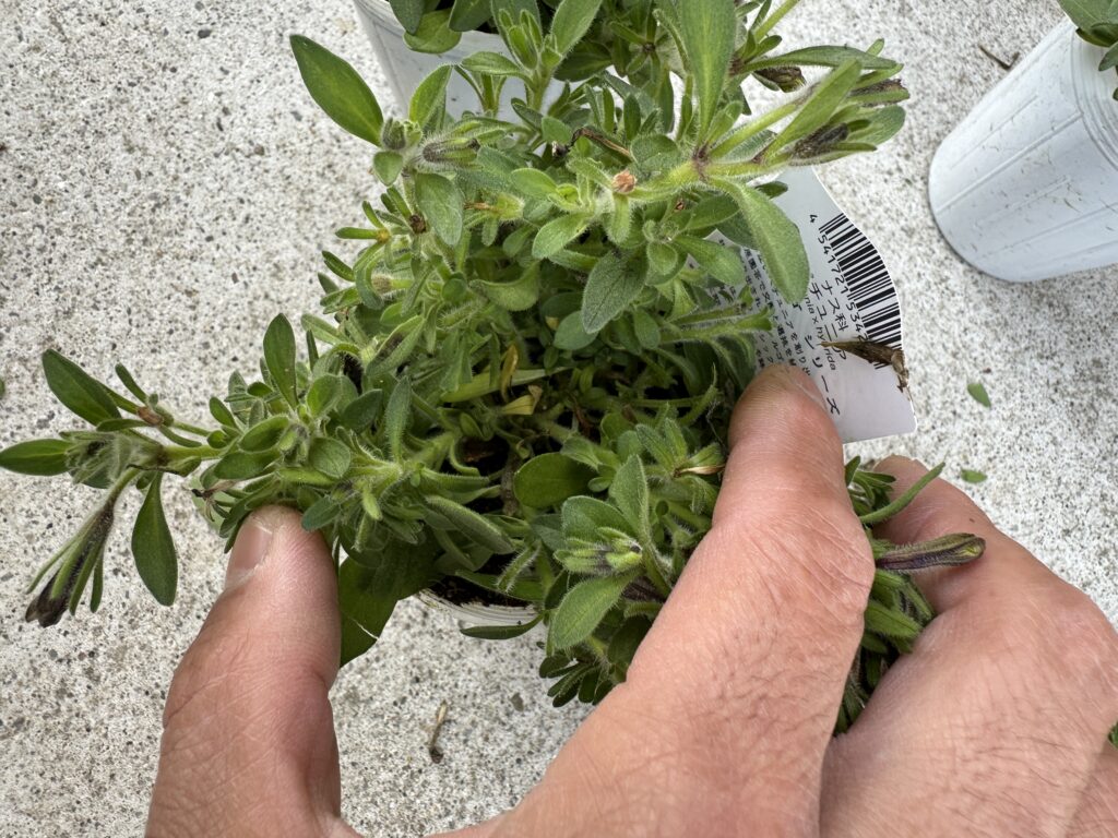 ペチュニア系は、すぐナメクジやカタツムリにやられて
